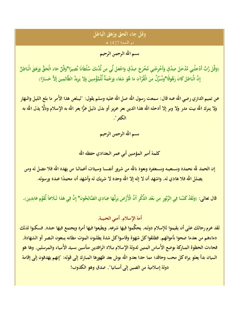 01 خطابات الش يخ أبو عمر البغدادي رحمه الله وقل جاء الحق وزهق الباطل