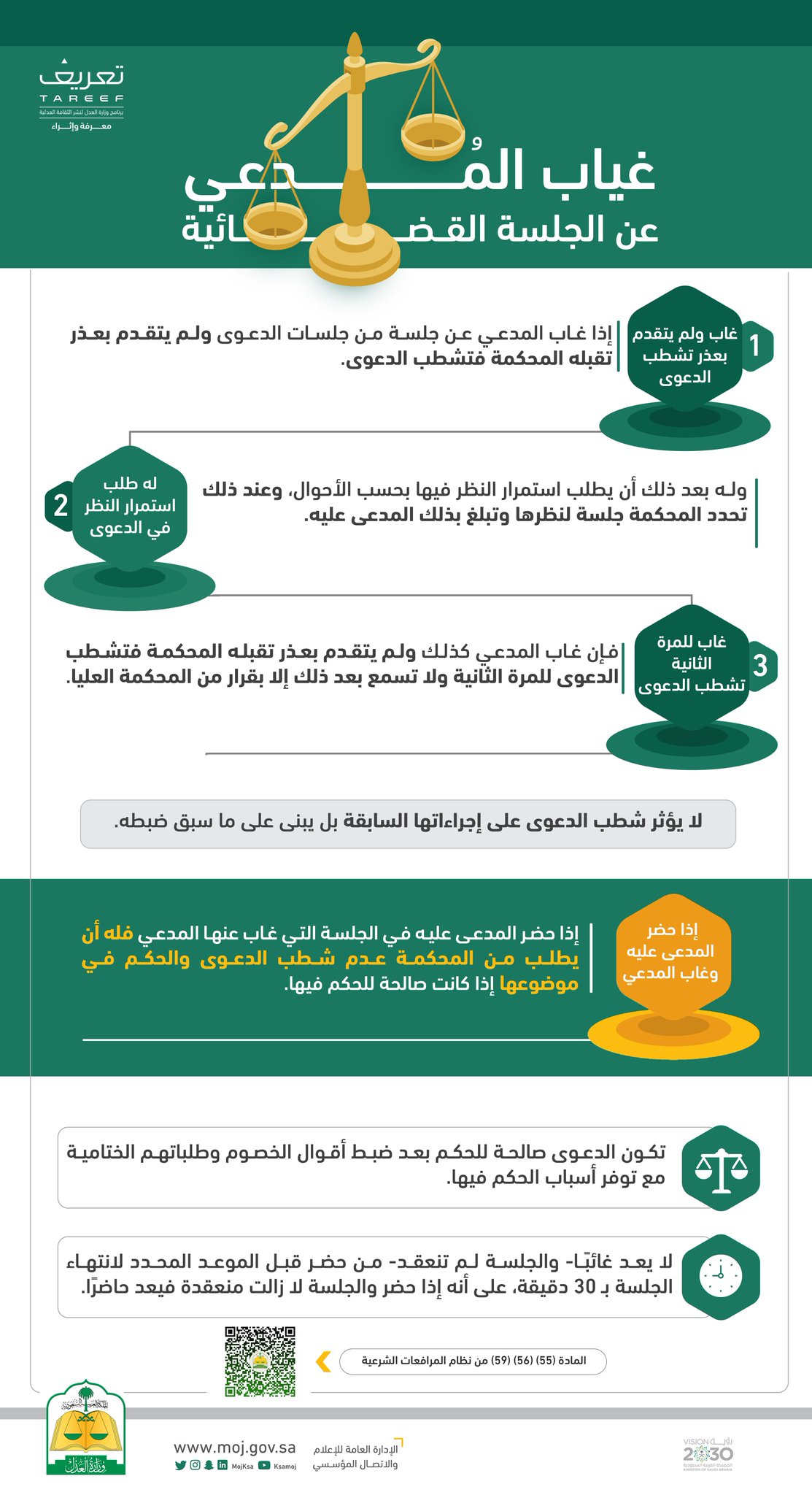 تعريف Tareef On Twitter إذا حضر المدعى عليه في الجلسة التي غاب عنها المدعي فله أن يطلب من المحكمة عدم شطب الدعوى والحكم في موضوعها إذا كانت صالحة للحكم فيها Https T Co Umzcqduopn
