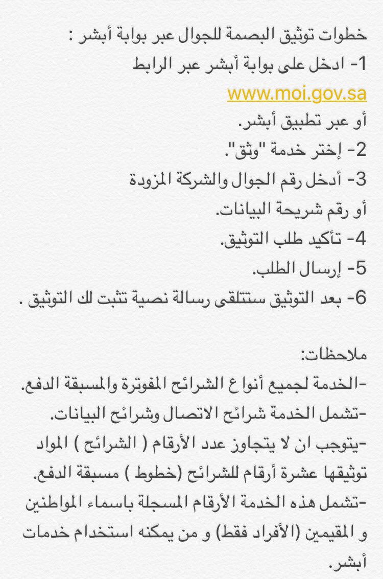 طريقة توثيق شريحة الجوال بالبصمة من خلال خدمة ابشر دليل السعودية