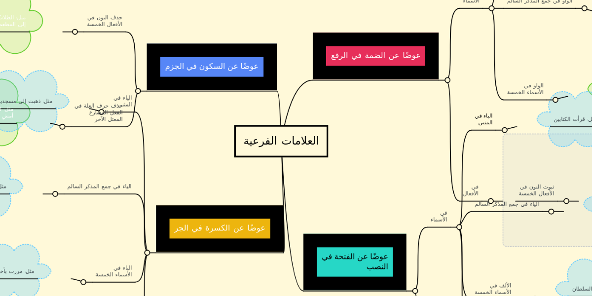 خريطة ذهنية علامات الاعراب الاصلية والفرعية