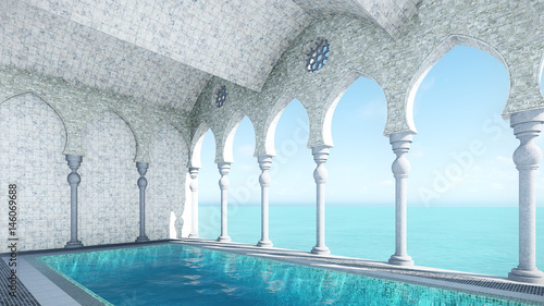 3d Render From Imagine Arabic Pool Sea View Right View Buy This Stock Illustration And Explore Similar Illustrations At Adobe Stock Adobe Stock
